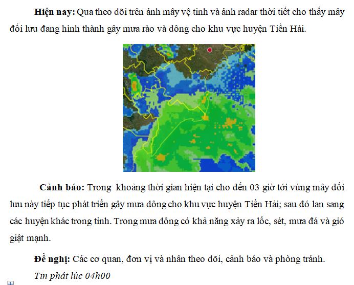 CẢNH BÁO MƯA DÔNG TRÊN KHU VỰC TỈNH THÁI BÌNH ngày 26/04/2021 (lần 1)
