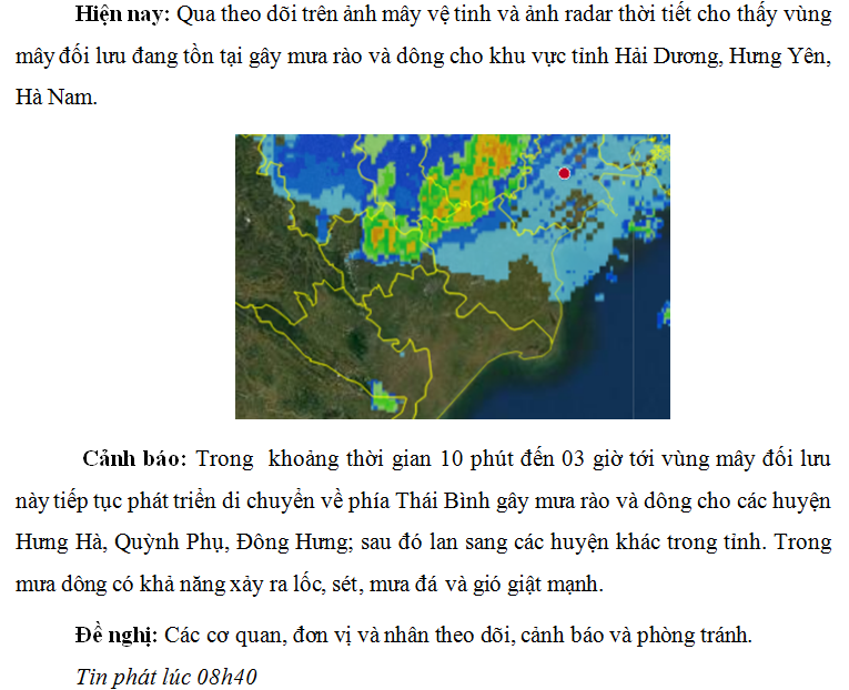CẢNH BÁO MƯA DÔNG TRÊN KHU VỰC TỈNH THÁI BÌNH ngày 26/04/2021 (lần 2)