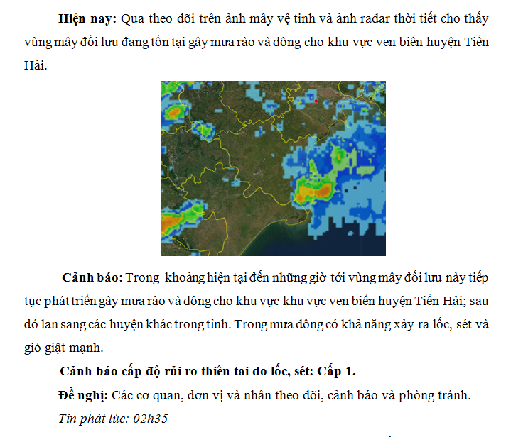 CẢNH BÁO MƯA DÔNG TRÊN KHU VỰC TỈNH THÁI BÌNH NGÀY 27/8/2021 (lần 1)
