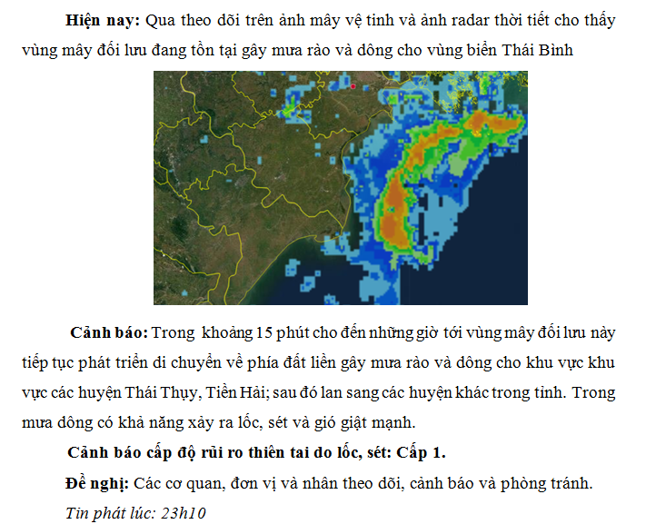 CẢNH BÁO MƯA DÔNG TRÊN KHU VỰC TỈNH THÁI BÌNH NGÀY 27/8/2021 (lần 3)