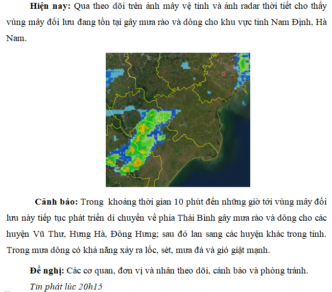 CẢNH BÁO MƯA DÔNG TRÊN KHU VỰC TỈNH THÁI BÌNH ngày 28/04/2021 (lần 1)