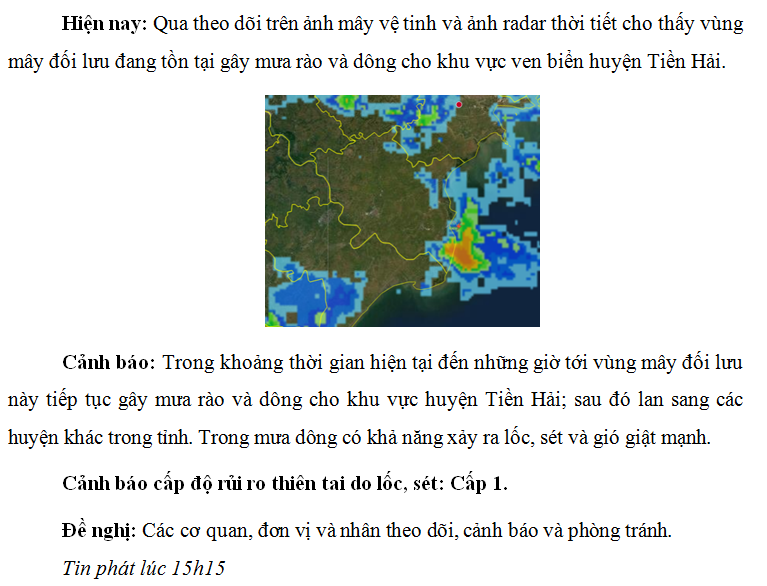 CẢNH BÁO MƯA DÔNG TRÊN KHU VỰC TỈNH THÁI BÌNH NGÀY 28/7/2021 (LẦN 1)