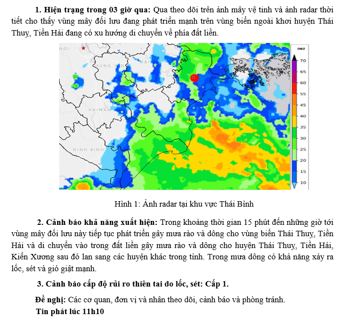 TIN CẢNH BÁO DÔNG, LỐC, SÉT KHU VỰC TỈNH THÁI BÌNH NGÀY 03/8/2023 (Lần 2)