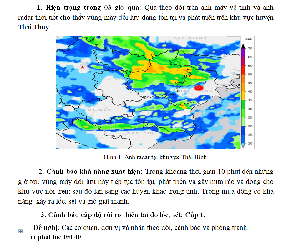TIN CẢNH BÁO DÔNG, LỐC, SÉT KHU VỰC TỈNH THÁI BÌNH NGÀY 04/8/2023 (Lần 1)
