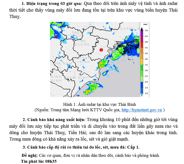 TIN CẢNH BÁO DÔNG, LỐC, SÉT KHU VỰC TỈNH THÁI BÌNH NGÀY 10/05/2024 (LẦN 2)