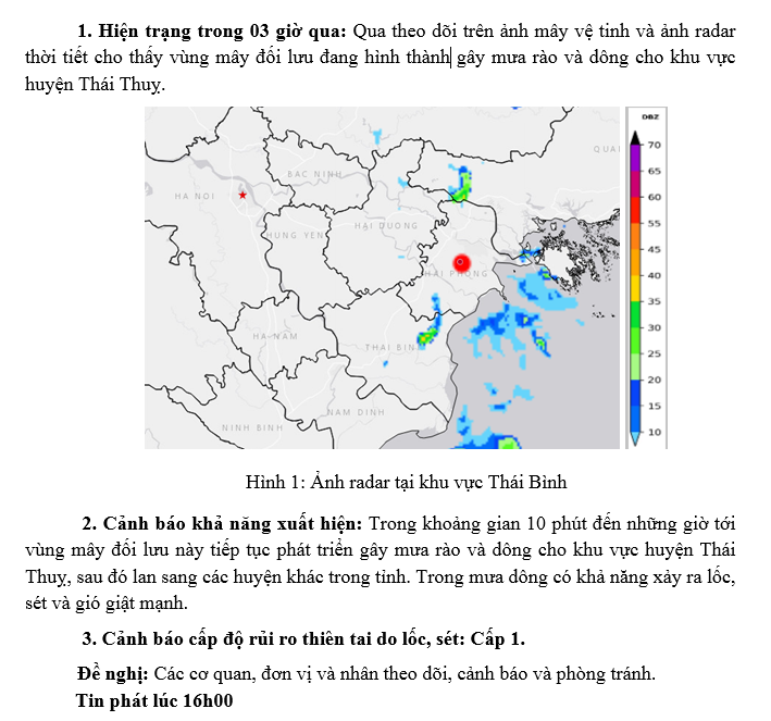 TIN CẢNH BÁO DÔNG, LỐC, SÉT KHU VỰC TỈNH THÁI BÌNH NGÀY 13/7/2023 (Lần 1)