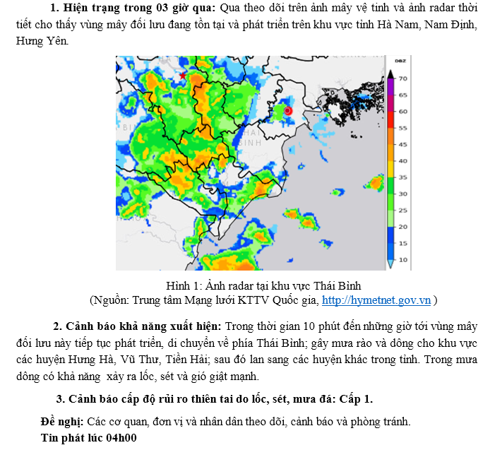 TIN CẢNH BÁO DÔNG, LỐC, SÉT KHU VỰC TỈNH THÁI BÌNH NGÀY 19/03/2024