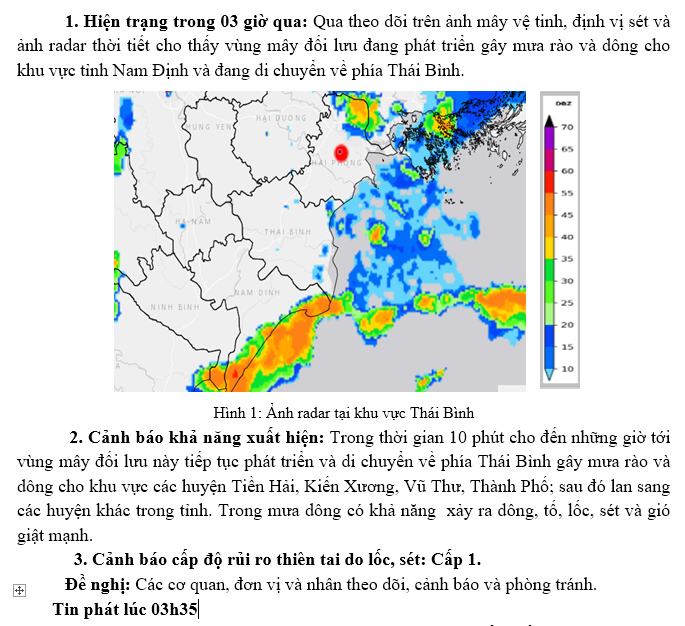 TIN CẢNH BÁO DÔNG, LỐC, SÉT KHU VỰC TỈNH THÁI BÌNH NGÀY 20/8/2023 (Lần 1)