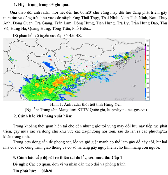 TIN CẢNH BÁO DÔNG, LỐC, SÉT, MƯA ĐÁ VÀ MƯA LỚN CỤC BỘ TỈNH HƯNG YÊN ( NGÀY 01/9/2025-Lần 2)