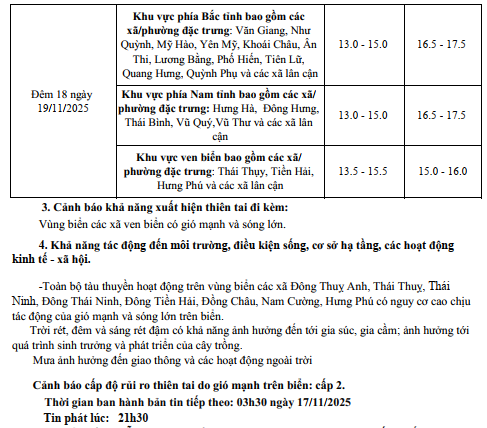 • TIN DỰ BÁO GIÓ MẠNH, SÓNG LỚN TRÊN VÙNG BIỂN KHU VỰC HƯNG YÊN (16h00 ngày 19/11/2025)