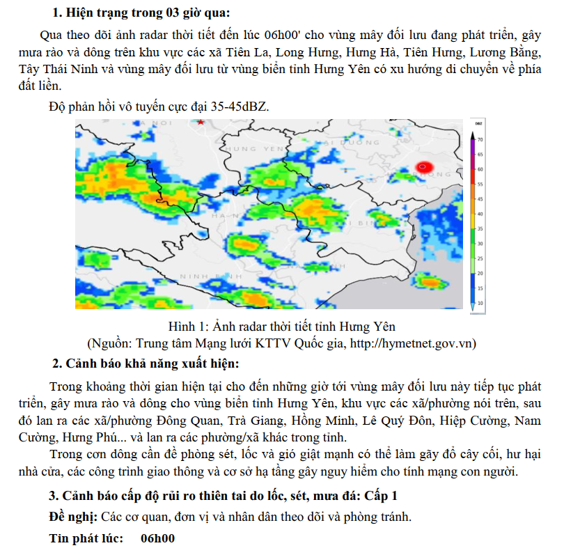 TIN CẢNH BÁO DÔNG, LỐC, SÉT, MƯA ĐÁ VÀ MƯA LỚN CỤC BỘ TỈNH HƯNG YÊN ( NGÀY 31/8/2025-Lần 2)