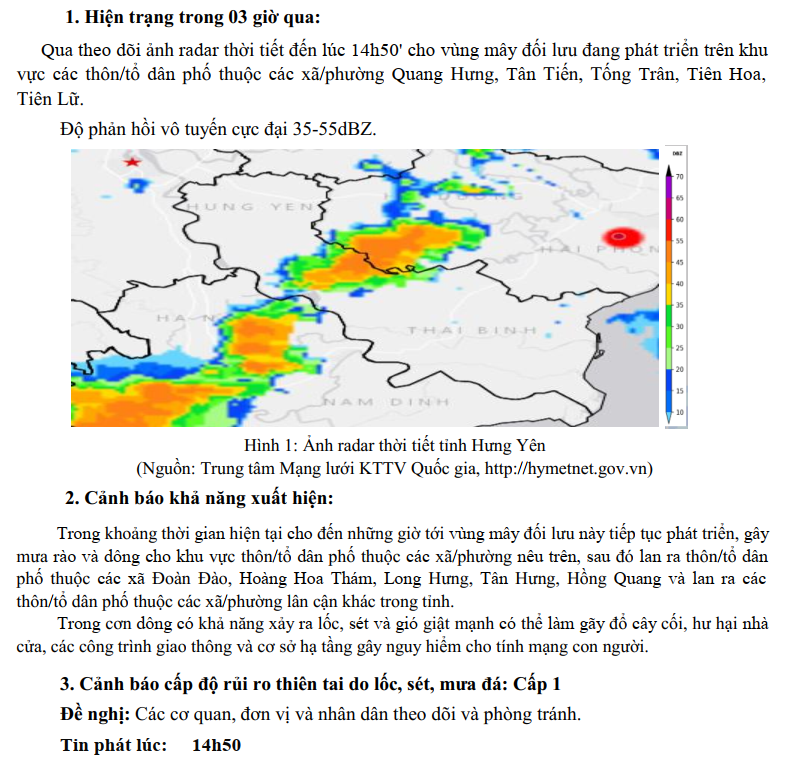 TIN CẢNH BÁO DÔNG, LỐC, SÉT, MƯA ĐÁ VÀ MƯA LỚN CỤC BỘ TỈNH HƯNG YÊN (NGÀY 11/10/2025-Lần 4)
