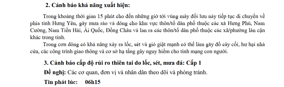 TIN CẢNH BÁO DÔNG, LỐC, SÉT, MƯA ĐÁ VÀ MƯA LỚN CỤC BỘ TỈNH HƯNG YÊN (NGÀY 12/10/2025-Lần 1)