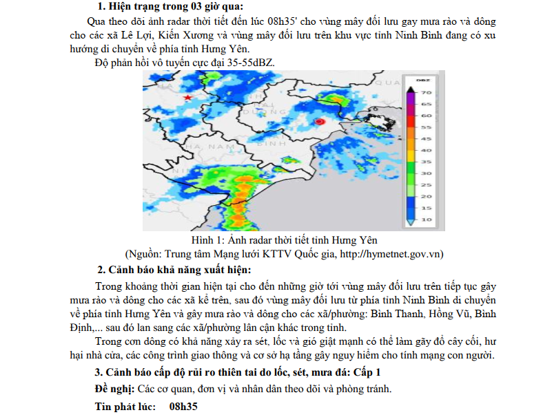 TIN CẢNH BÁO DÔNG, LỐC, SÉT, MƯA ĐÁ VÀ MƯA LỚN CỤC BỘ TỈNH HƯNG YÊN (NGÀY 12/9/2025-Lần 2)