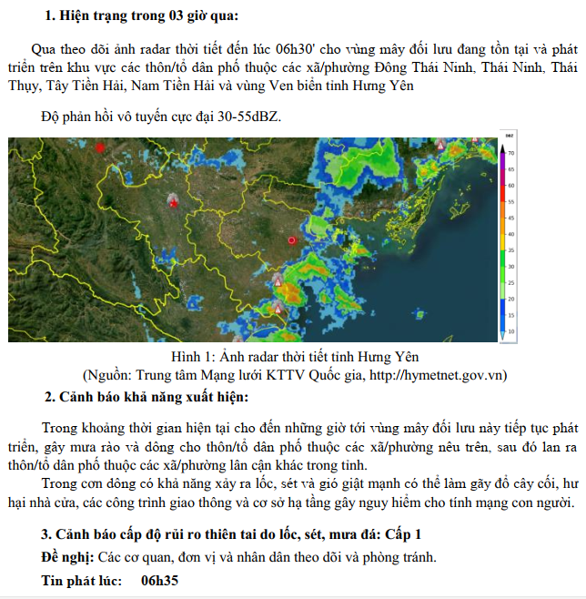 TIN CẢNH BÁO DÔNG, LỐC, SÉT, MƯA ĐÁ VÀ MƯA LỚN CỤC BỘ TỈNH HƯNG YÊN (NGÀY 13/10/2025-Lần2