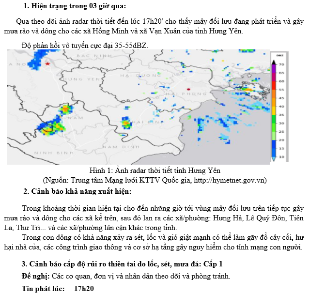 TIN CẢNH BÁO DÔNG, LỐC, SÉT, MƯA ĐÁ VÀ MƯA LỚN CỤC BỘ TỈNH HƯNG YÊN (NGÀY 14/9/2025-Lần 3)
