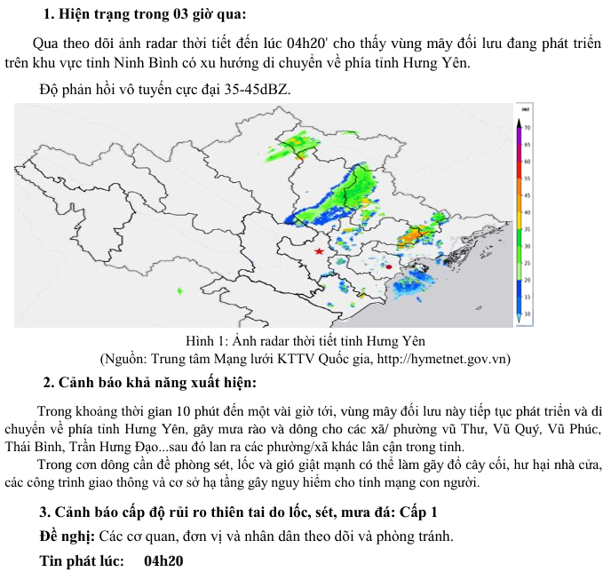 TIN CẢNH BÁO DÔNG, LỐC, SÉT, MƯA ĐÁ VÀ MƯA LỚN CỤC BỘ TỈNH HƯNG YÊN (NGÀY 21/8/2025-Lần 1)