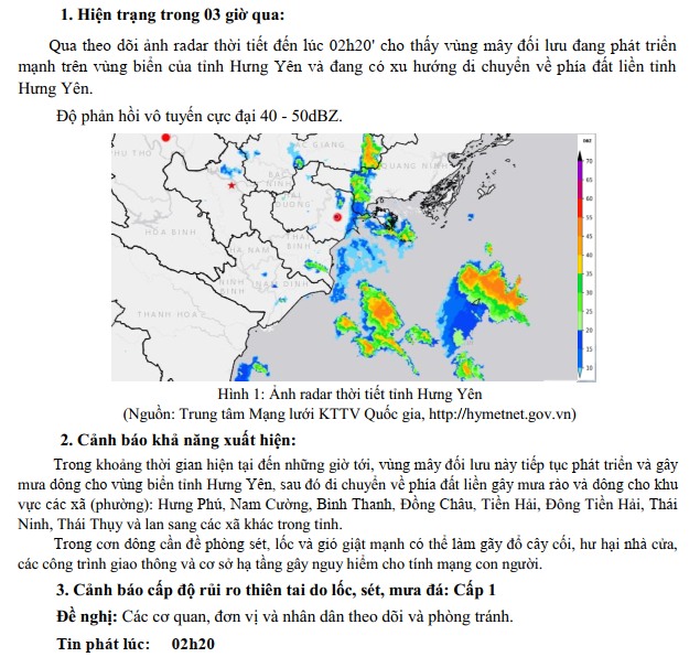 TIN CẢNH BÁO DÔNG, LỐC, SÉT, MƯA ĐÁ VÀ MƯA LỚN CỤC BỘ TỈNH HƯNG YÊN (NGÀY 23/8/2025-Lần 1)