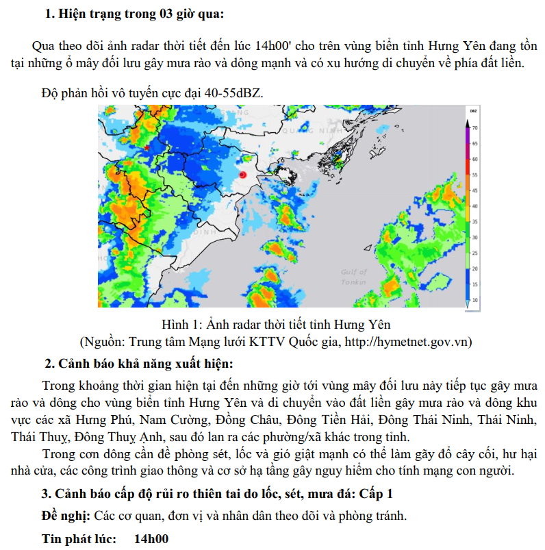 TIN CẢNH BÁO DÔNG, LỐC, SÉT, MƯA ĐÁ VÀ MƯA LỚN CỤC BỘ TỈNH HƯNG YÊN (NGÀY 24/8/2025-Lần 3)
