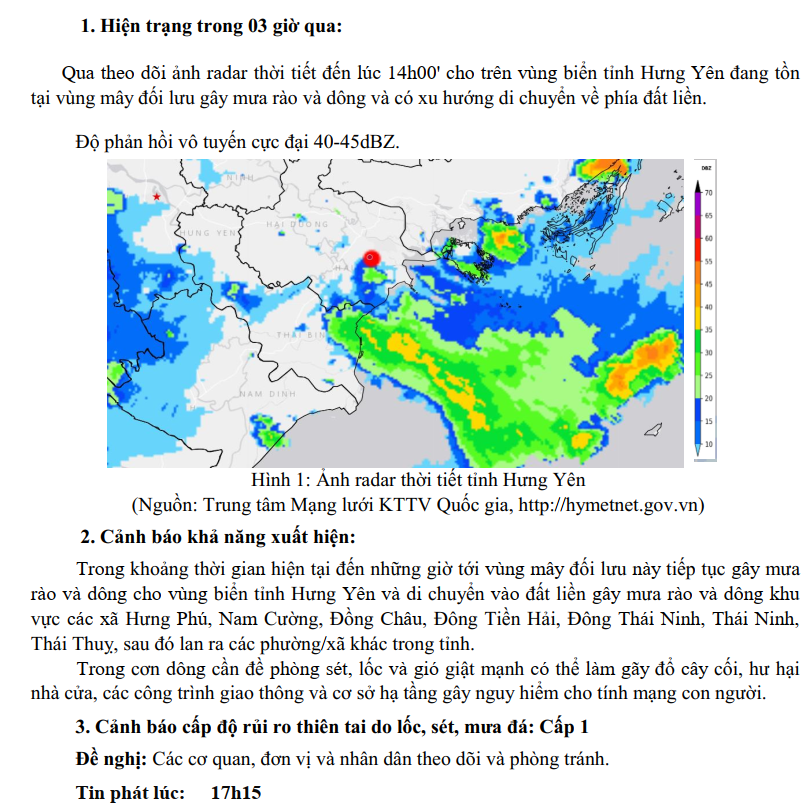 TIN CẢNH BÁO DÔNG, LỐC, SÉT, MƯA ĐÁ VÀ MƯA LỚN CỤC BỘ TỈNH HƯNG YÊN (NGÀY 24/8/2025-Lần 4)