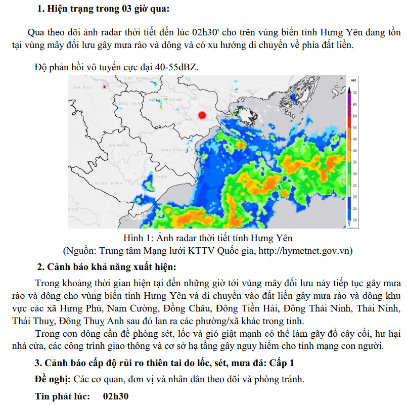 TIN CẢNH BÁO DÔNG, LỐC, SÉT, MƯA ĐÁ VÀ MƯA LỚN CỤC BỘ TỈNH HƯNG YÊN (NGÀY 25/8/2025-Lần 1)