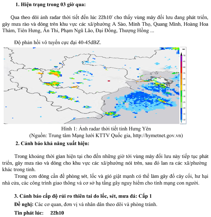 TIN CẢNH BÁO DÔNG, LỐC, SÉT, MƯA ĐÁ VÀ MƯA LỚN CỤC BỘ TỈNH HƯNG YÊN (NGÀY 26/8/2025-Lần 3)