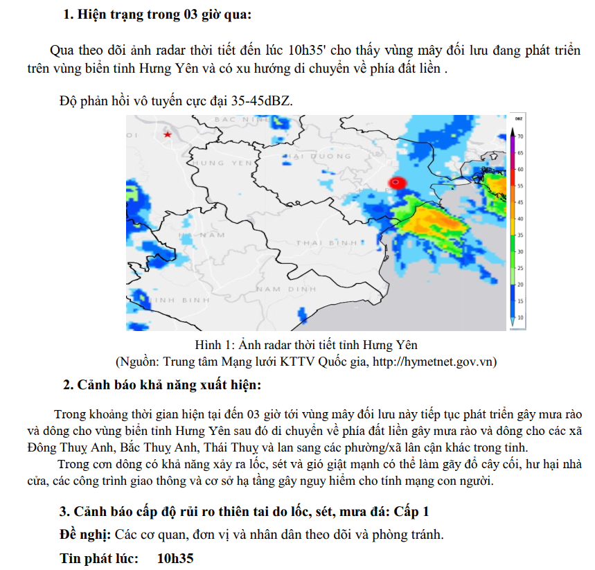 TIN CẢNH BÁO DÔNG, LỐC, SÉT, MƯA ĐÁ VÀ MƯA LỚN CỤC BỘ TỈNH HƯNG YÊN (NGÀY 26/9/2025-Lần 1)