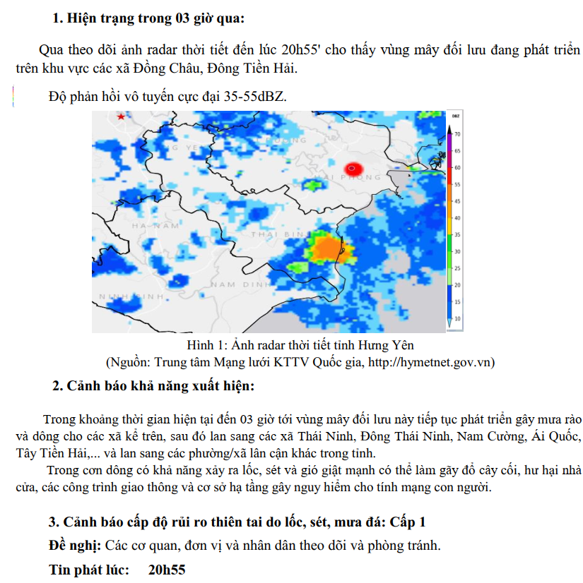 TIN CẢNH BÁO DÔNG, LỐC, SÉT, MƯA ĐÁ VÀ MƯA LỚN CỤC BỘ TỈNH HƯNG YÊN, NGÀY 27/9/2025-Lần 3