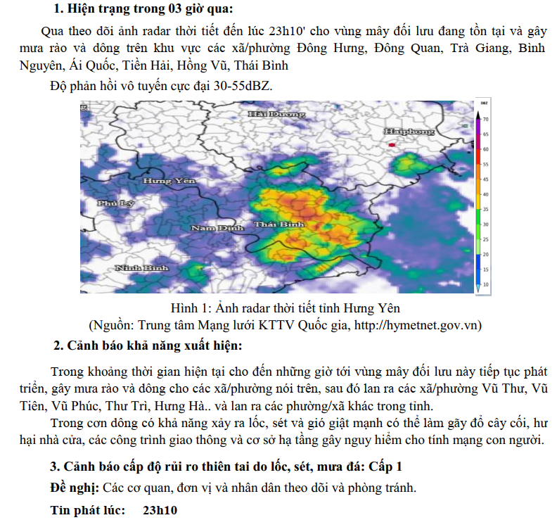 TIN CẢNH BÁO DÔNG, LỐC, SÉT, MƯA ĐÁ VÀ MƯA LỚN CỤC BỘ TỈNH HƯNG YÊN, NGÀY 27/9/2025-Lần 4