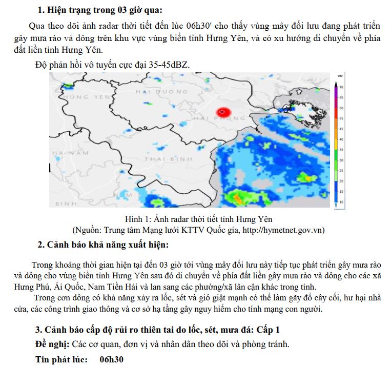 TIN CẢNH BÁO DÔNG, LỐC, SÉT, MƯA ĐÁ VÀ MƯA LỚN CỤC BỘ TỈNH HƯNG YÊN, NGÀY 28/9/2025-Lần 1