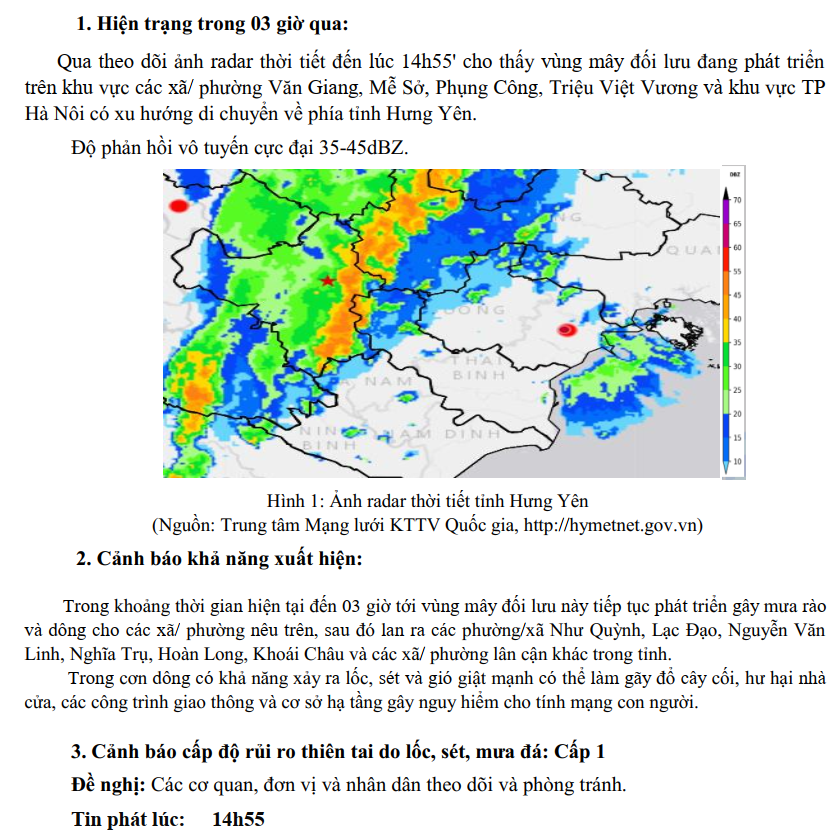 TIN CẢNH BÁO DÔNG, LỐC, SÉT, MƯA ĐÁ VÀ MƯA LỚN CỤC BỘ TỈNH HƯNG YÊN (NGÀY 30/9/2025-Lần 2)