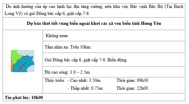 • BẢN TIN DỰ BÁO HẢI VĂN 10 NGÀY VÙNG BIỂN TỈNH HƯNG YÊN (Từ 04/12/2025 đến 13/12/2025)