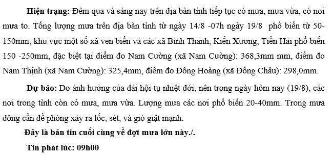 • BẢN TIN DỰ BÁO, CẢNH BÁO THỦY VĂN THỜI HẠN NGẮN TỈNH HƯNG YÊN (04/12/2025)