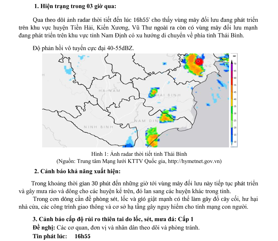 TIN CẢNH BÁO DÔNG, LỐC, SÉT, MƯA ĐÁ VÀ MƯA LỚN CỤC BỘ TRÊN KHU VỰC TỈNH THÁI BÌNH (Ngày 11/6/2025 - Lần 2)