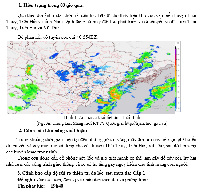 TIN CẢNH BÁO DÔNG, LỐC, SÉT, MƯA ĐÁ VÀ MƯA LỚN CỤC BỘ TRÊN KHU VỰC TỈNH THÁI BÌNH (Ngày 12/6/2025 - Lần 2)