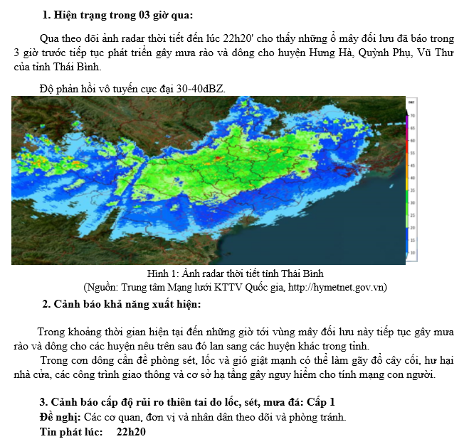 TIN CẢNH BÁO DÔNG, LỐC, SÉT, MƯA ĐÁ VÀ MƯA LỚN CỤC BỘ TRÊN KHU VỰC TỈNH THÁI BÌNH (Ngày 15/6/2025 - Lần 2)