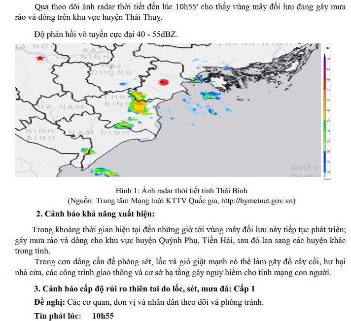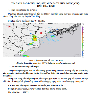 TIN CẢNH BÁO DÔNG, LỐC, SÉT, MƯA ĐÁ VÀ MƯA LỚN CỤC BỘ TRÊN KHU VỰC TỈNH THÁI BÌNH (ngày 25/6/2025 - Lần 2)