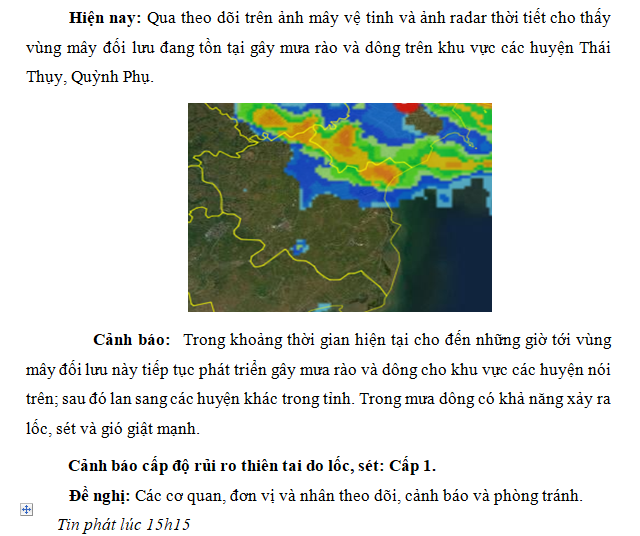 TIN CẢNH BÁO DÔNG, LỐC, SÉT TRÊN KHU VỰC TỈNH THÁI BÌNH NGÀY 01/7/2022 (Lần 3)