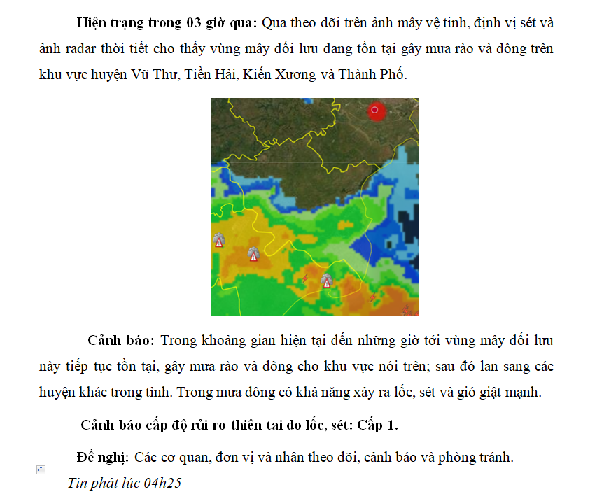 TIN CẢNH BÁO DÔNG, LỐC, SÉT TRÊN KHU VỰC TỈNH THÁI BÌNH NGÀY 09/10/2022 (lần 2)