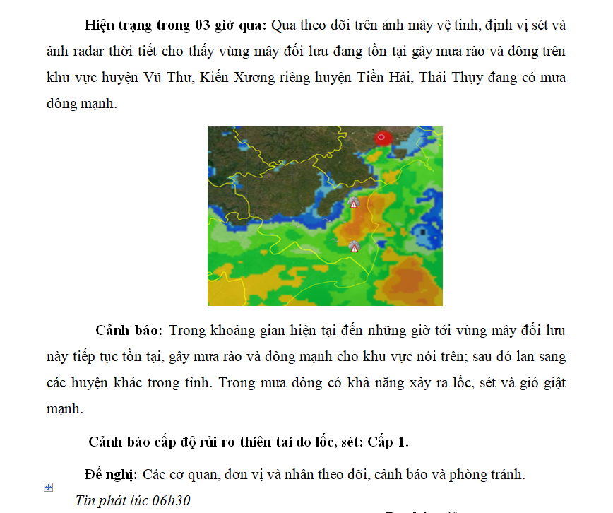 TIN CẢNH BÁO DÔNG, LỐC, SÉT TRÊN KHU VỰC TỈNH THÁI BÌNH NGÀY 09/10/2022 (lần 3)