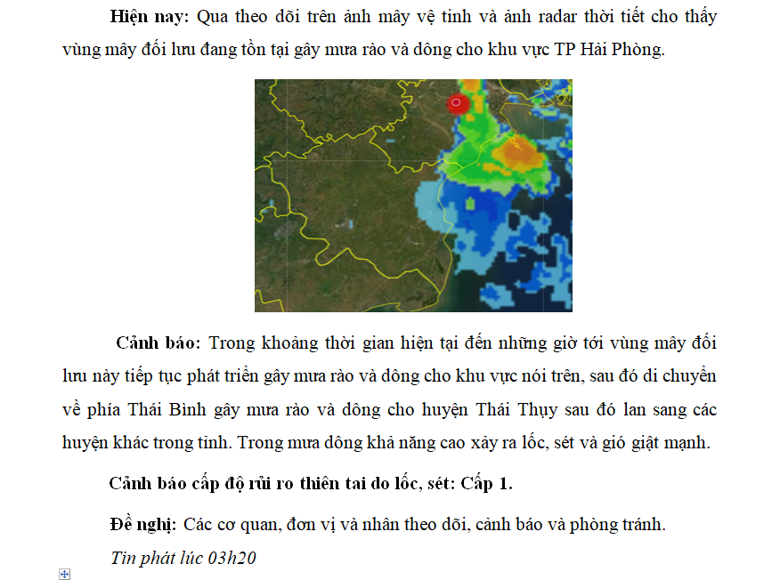 TIN CẢNH BÁO DÔNG, LỐC, SÉT TRÊN KHU VỰC TỈNH THÁI BÌNH NGÀY 16/9/2022 (lần 1)