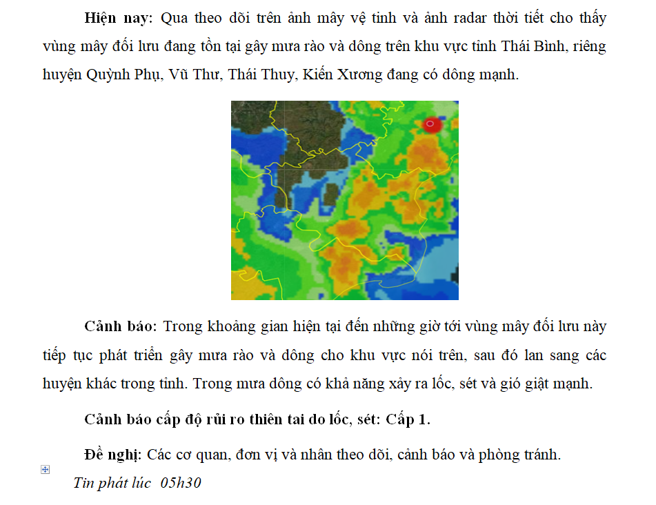 TIN CẢNH BÁO DÔNG, LỐC, SÉT TRÊN KHU VỰC TỈNH THÁI BÌNH NGÀY 17/9/2022 (lần 2)