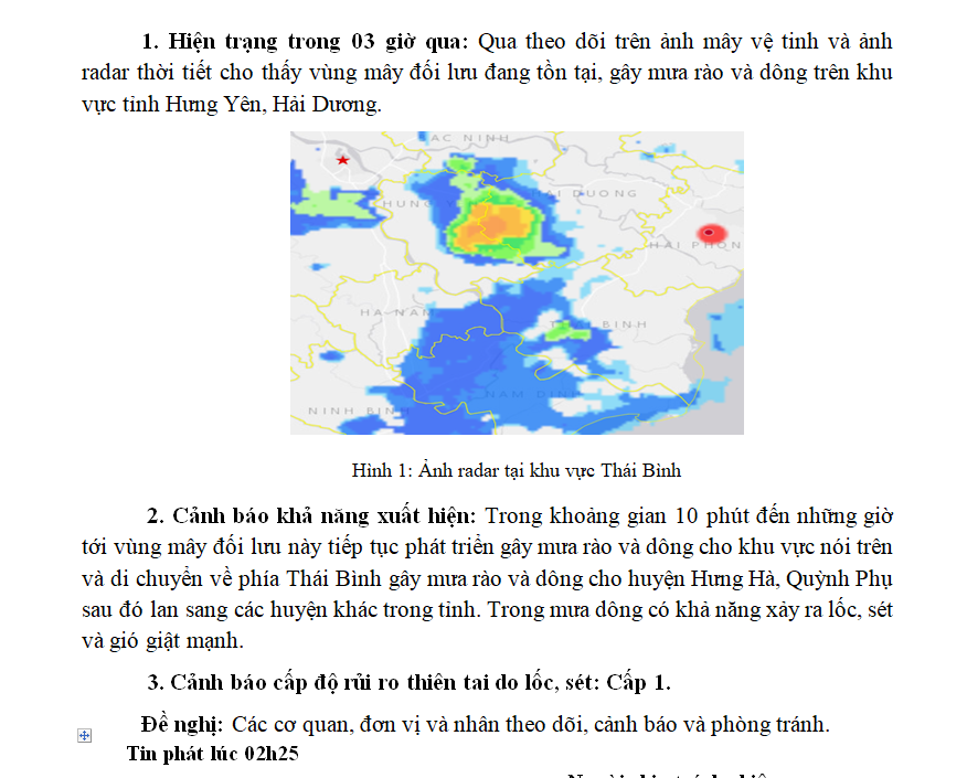 TIN CẢNH BÁO DÔNG, LỐC, SÉT TRÊN KHU VỰC TỈNH THÁI BÌNH NGÀY 23/04/2023 (Lần 1)