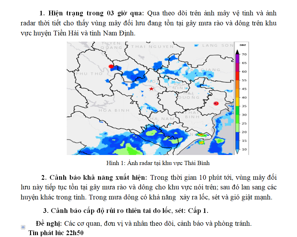 TIN CẢNH BÁO DÔNG, LỐC, SÉT TRÊN KHU VỰC TỈNH THÁI BÌNH NGÀY 25/6/2023 (Lần 2)
