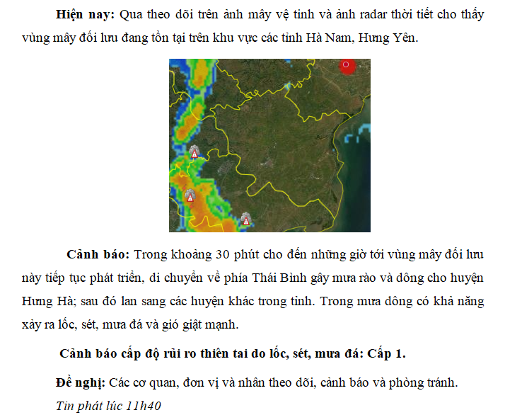 TIN CẢNH BÁO DÔNG, LỐC, SÉT TRÊN KHU VỰC TỈNH THÁI BÌNH NGÀY 30/5/2022( Lần 1)