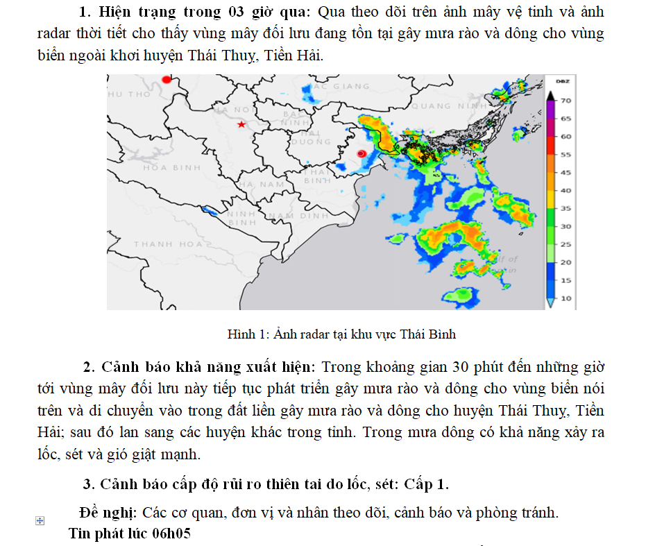TIN CẢNH BÁO DÔNG, LỐC, SÉT VÀ MƯA LỚN CỤC BỘ TRÊN KHU VỰC TỈNH THÁI BÌNH NGÀY 05/6/2023 (Lần 1)