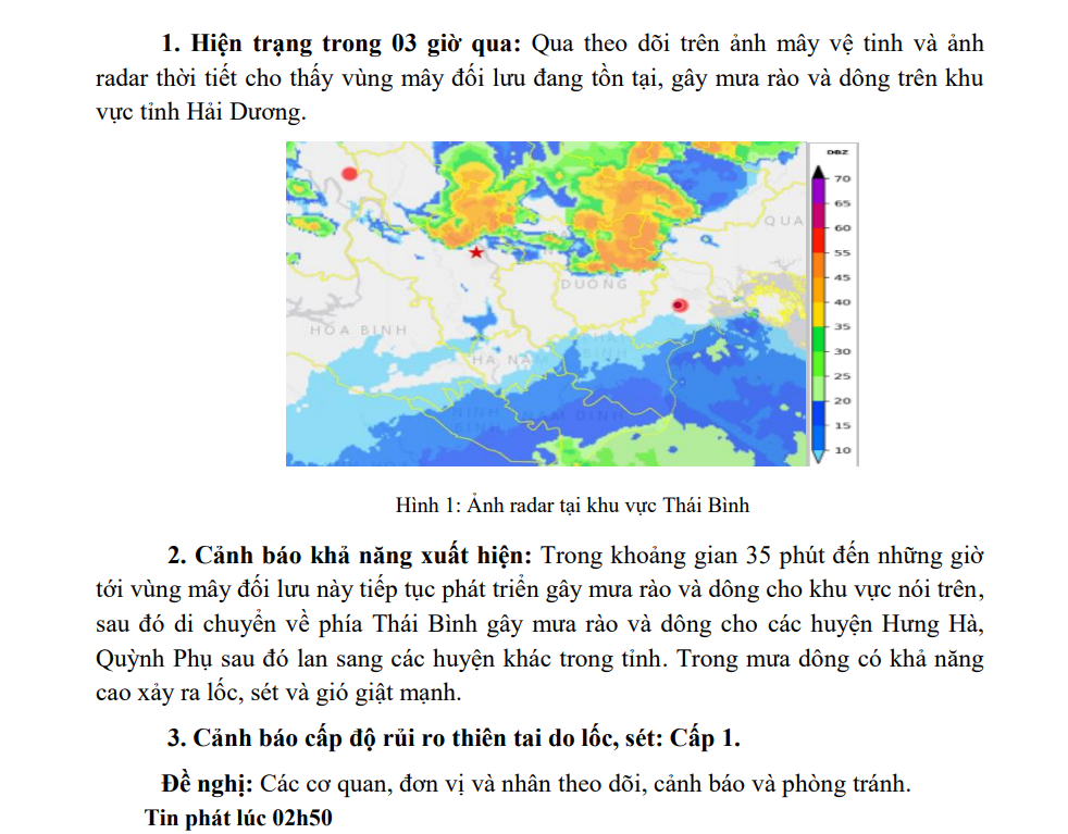 TIN CẢNH BÁO DÔNG, LỐC, SÉT VÀ MƯA LỚN CỤC BỘ TRÊN KHU VỰC TỈNH THÁI BÌNH NGÀY 08/5/2023 (Lần 1)