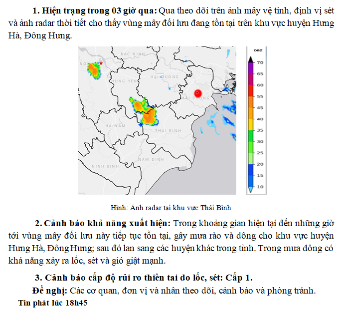 TIN CẢNH BÁO DÔNG, LỐC, SÉT VÀ MƯA LỚN CỤC BỘ TRÊN KHU VỰC TỈNH THÁI BÌNH NGÀY 08/6/2023 (Lần 1)