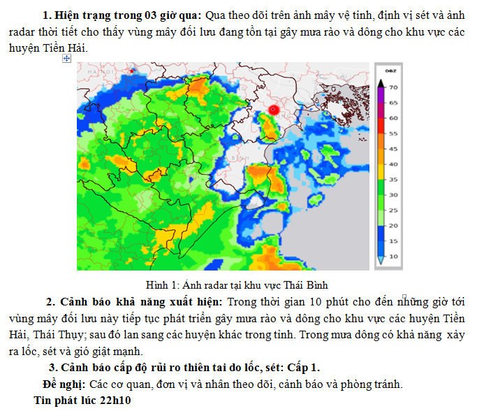 TIN CẢNH BÁO DÔNG, LỐC, SÉT VÀ MƯA LỚN CỤC BỘ TRÊN KHU VỰC TỈNH THÁI BÌNH NGÀY 14/6/2023 (Lần 2)