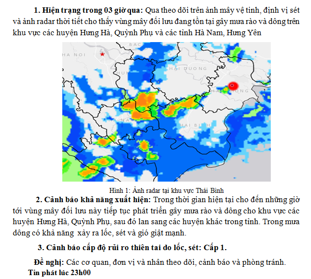 TIN CẢNH BÁO DÔNG, LỐC, SÉT VÀ MƯA LỚN CỤC BỘ TRÊN KHU VỰC TỈNH THÁI BÌNH NGÀY 23/5/2023 (Lần 2)